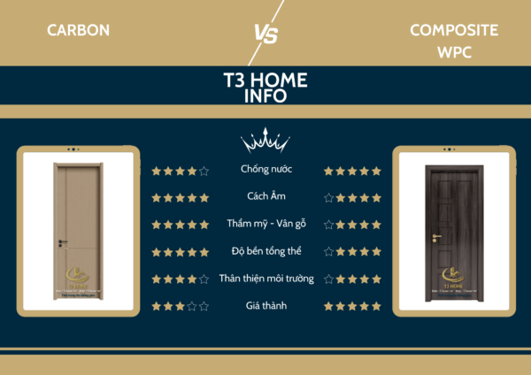 Tiêu chíCửa Gỗ Tự NhiênCửa MDF Công NghiệpCửa Gỗ Carbon T3Home